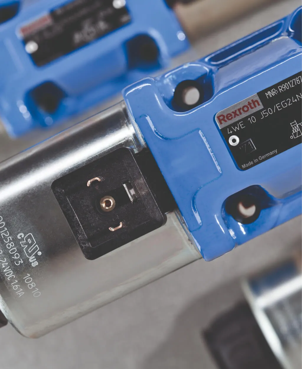 With Rexroth's hydraulic valves, you can control and regulate the volume flow, whereby the start or stop, direction and quantity of the volume flow can be influenced for a direction of movement or rotation of hydraulic drives. The hydraulic valves are controlled via various actuation types and thus cause the valve elements to open or close. Either fixed switching positions for switching valves or adjustable intermediate positions for continuous valves are possible.